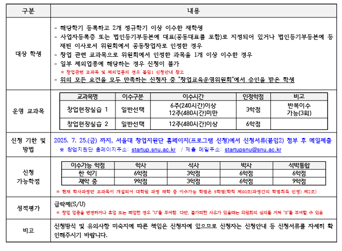 - [붙임3] 서울대학교 창업학점제 운영 지침.hwp (74 KB, download:31)