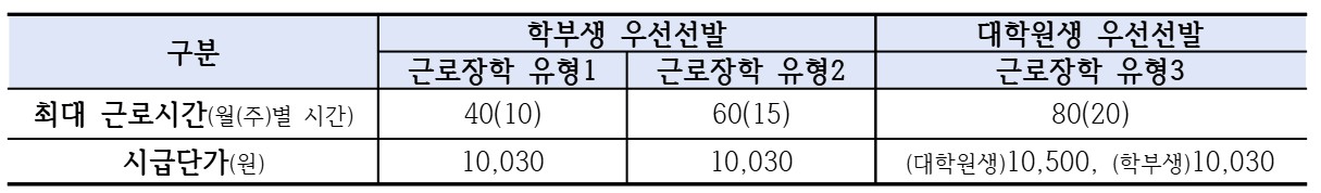- 근로부서별 선발 학생 중 학적변동 등으로 중도 포기자 발생 시 위 신청·승인 완료 학생 중 교체선발(해당 부서에서 개별연락)이 있을 수 있음