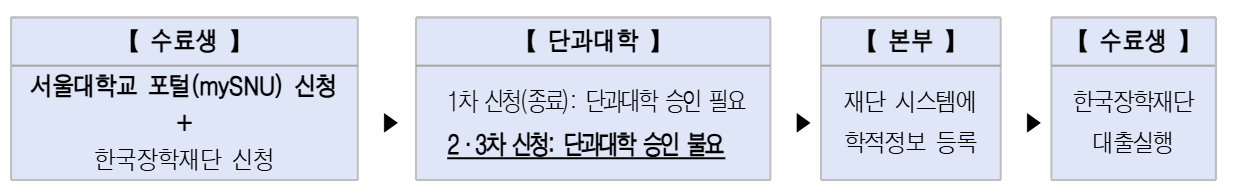 *학자금대출이 필요한 시점에 원활하게 대출실행을 할 수 있도록 대상자들은 미리 신청할 것.(대출 신청만으로 실제 대출이 이루어지진 않음)