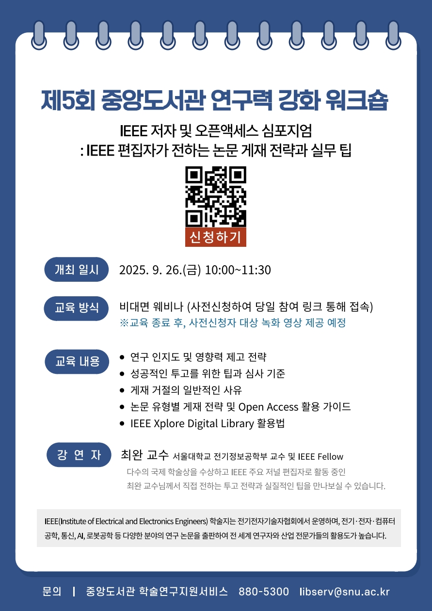 1. 제 목: [온라인] 2025년 제5회 중앙도서관 연구력 강화 워크숍