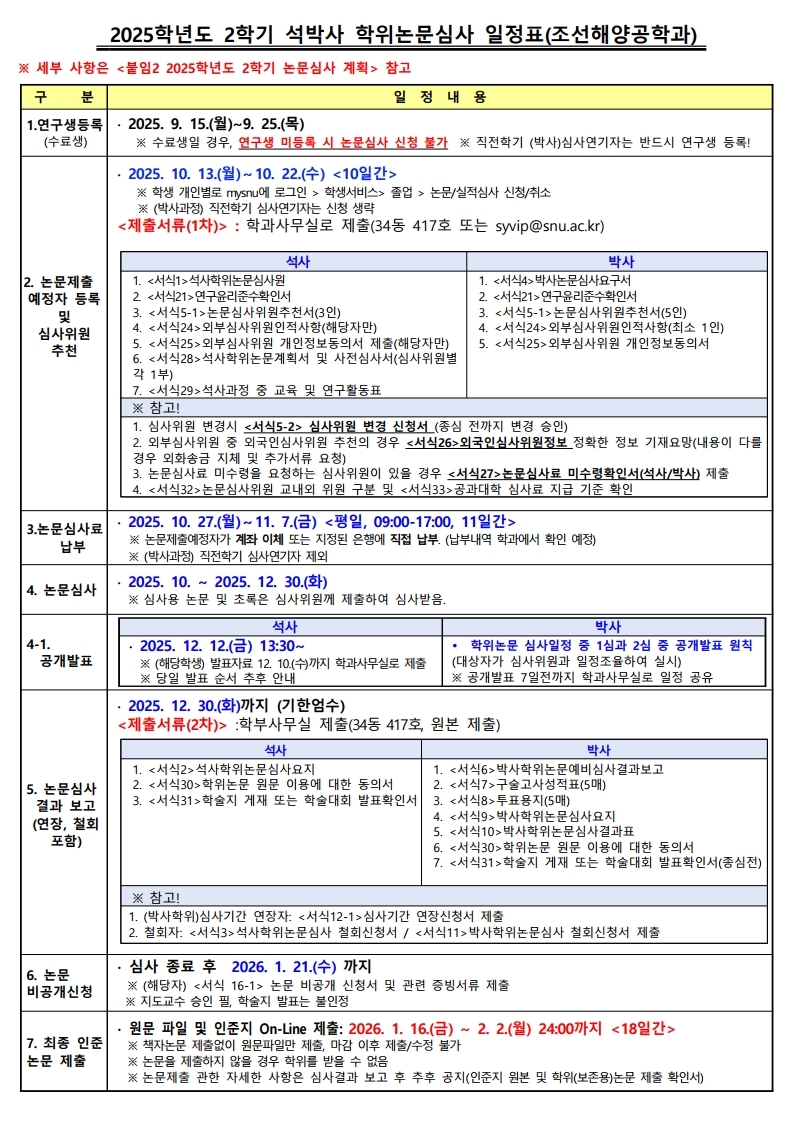 - 붙임1. 2025학년도 2학기 석박사 학위논문심사 일정표(조선해양공학과)_v.2.pdf (88 KB, download:13)