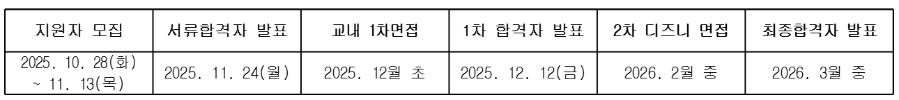 ※ 디즈니 인턴십 온라인 설명회: 2025. 10. 16(목) 21:00 신청 링크([안내] 2026 디즈니 인턴십 zoom info session 참여 안내 | OIA)