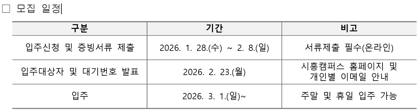 [대학원] 2026학년도 1학기 시흥캠퍼스 주택 대학원생 입주자 모집 안내
