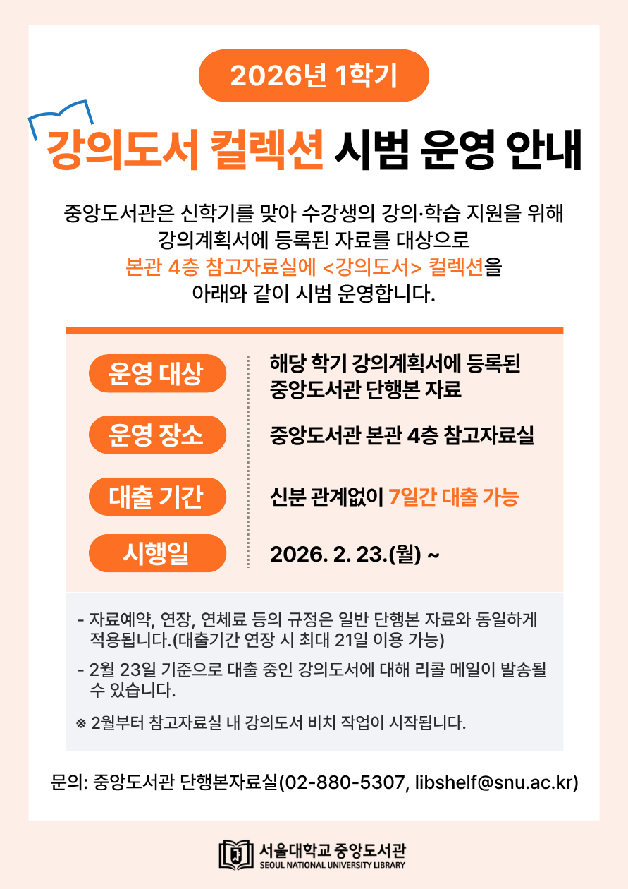 [공통] 2026년 1학기 중앙도서관 강의도서 컬렉션 시범 운영 안내